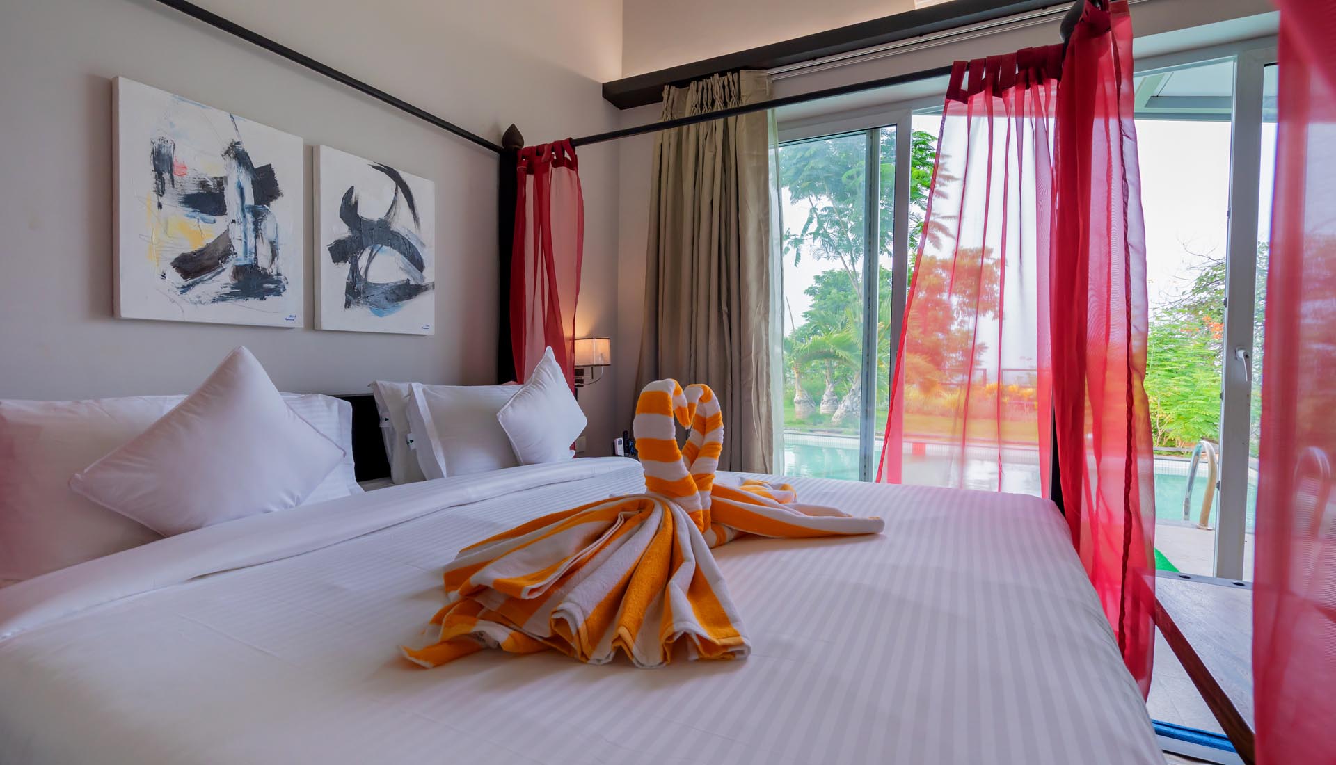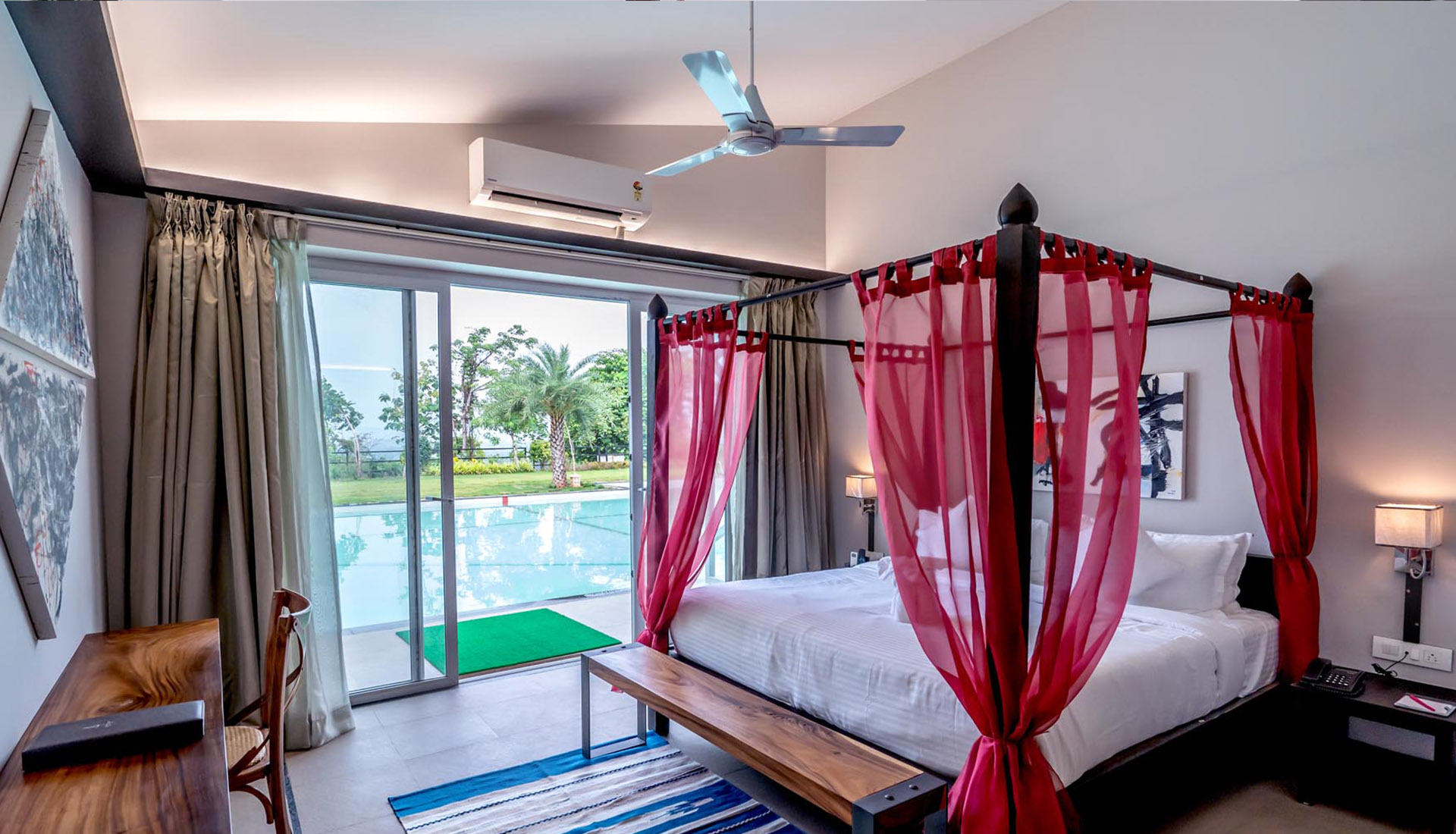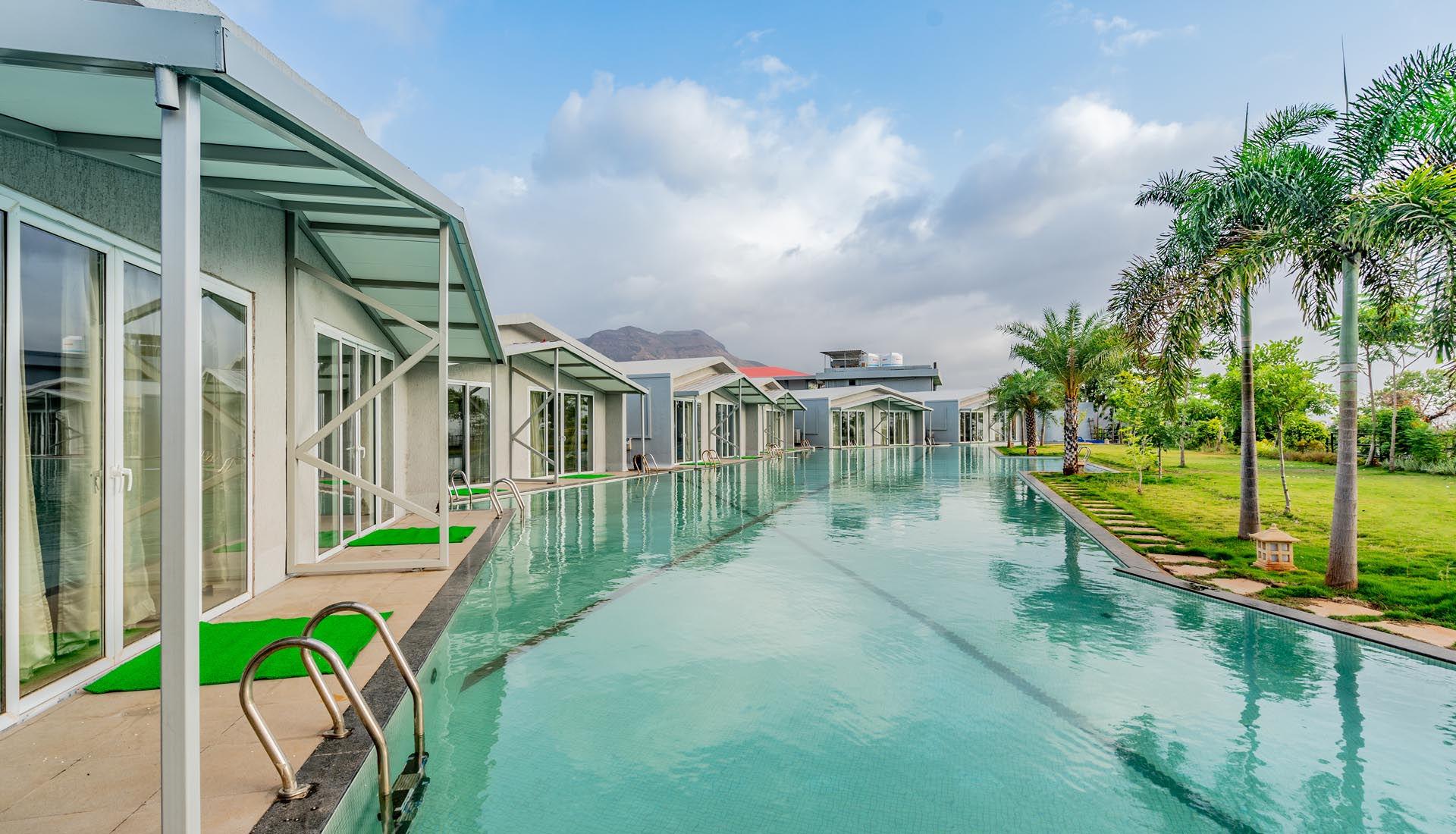 The meandering pool is also strategically placed right outside your accommodation. An attractive spot, it lets you take a dip at any time during the day as you are surrounded by the beauty of nature.